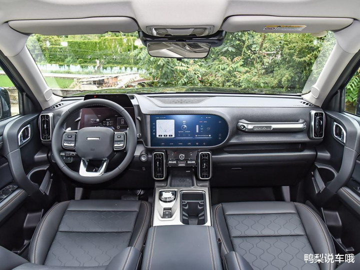 中控配有10.25英寸的全液晶仪表和12.3英寸的中控屏,车机系统比较全面,支持车联网、WiFi热点连接、carplay连接手机投屏、智能语音识别和手机APP远程控制功能。中高配还增加HUD抬头显示。中控下方提供旋钮式电子档杆。握感舒适,操作起来非常顺手,旁边还配备了驾驶模式切换旋钮,旋转之间,就能轻松切换经济、标准、运动、泥地、沙地、雪地等多达 8 种驾驶模式,满足不同路况下的驾驶需求。