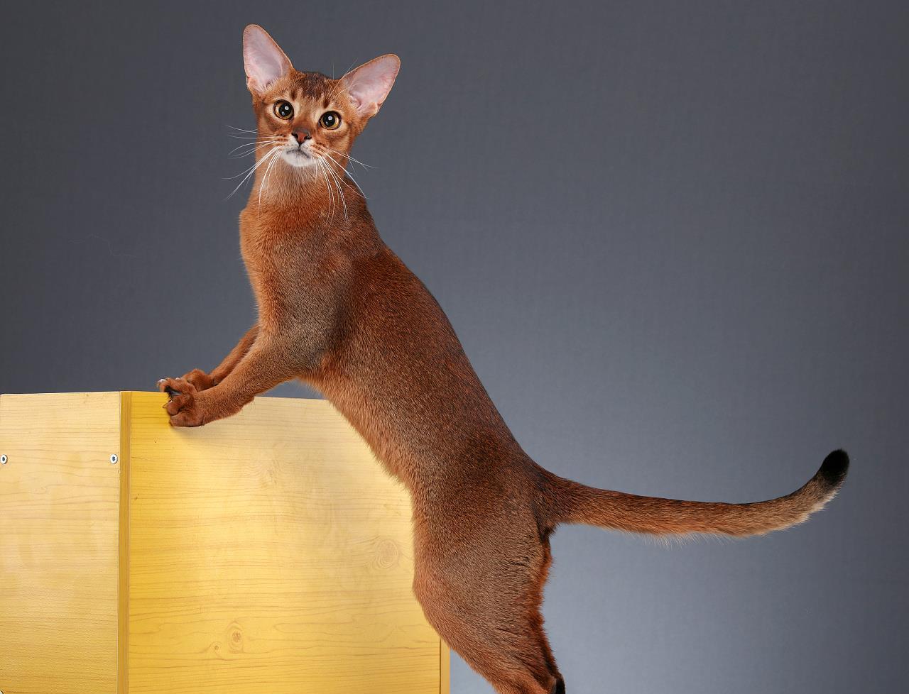 8、阿比西尼亚猫,许多人认为它们是古埃及神猫的直系后代,阿比是宠物猫界中身材最好的猫,一身结实的肌肉,尖尖的耳朵,大大的眼睛,像是一只小精灵,性格温和,很通人性,会揣测主人的想法并迎合主人,也是粘人精。阿比和俄蓝一样不怎么掉毛,因此也深受人们的喜爱。