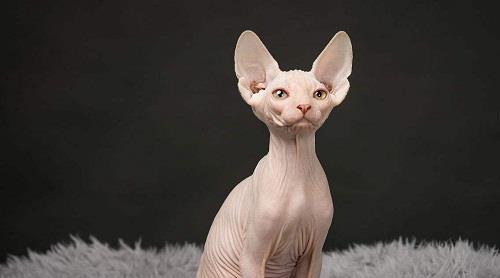 7、加拿大无毛猫,又叫斯芬克斯猫,是对猫毛过敏但又爱猫的人士的最佳选择。它们除了耳口鼻以及尾巴前段和脚部有些又薄又软的胎毛外,其它部分都没有毛,它们的皮肤对外界温度调节的能力较差,怕冷又怕热,因此需要主人对它们加倍的呵护和细心的照顾。它们性格温顺,几乎没有攻击性,也是一种特别适合陪伴的猫咪。