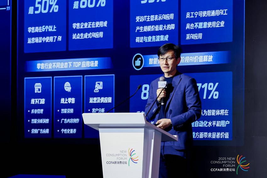 随着国家“人工智能+”行动的深入推进,AI的应用正从零散的单点尝试,走向系统化的全场景全链路渗透。程伟表示,在零售行业,企业积极拥抱AI,AI应用试点遍地开花,渗透到零售的各类业务场景,超过50%的零售商在6个以上的业务运营场景中使用了 AI,超80%的零售企业正积极测试或部署生成式AI应用。
