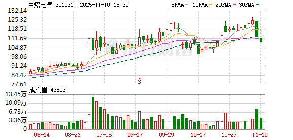 证券时报·数据宝统计显示,中熔电气今日收盘价为109.09元,下跌3.03%,日换手率为6.37%,成交额为4.80亿元,全天主力资金净流出3732.36万元,近5日该股累计下跌8.62%,近5日资金合计净流出2.33亿元。