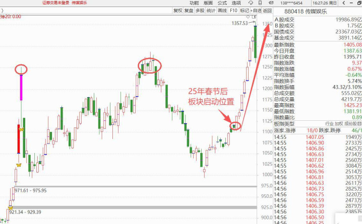 2025年春节档,《哪吒2》横空出世,不仅带火了票房,而且也带火了传媒娱乐。据记者梳理,2025年2月5日节后第一个交易日,A股上证指数高开低走、全天跌0.65%,其后走出“三连阳”,当时上证指数的走势并不算强势,尚在3300点一带徘徊。与上证指数相比,2025年春节后传媒娱乐的走势可谓是超预期,甚至可用“惊艳”来形容,节后首个交易日由于受大盘的拖累,传媒娱乐高开低走并没有发力,但其后高举高打,甚至一举突破2024年924行情也就是24年10月8日的平台高点,走出令人叹为观止的“八连阳”。