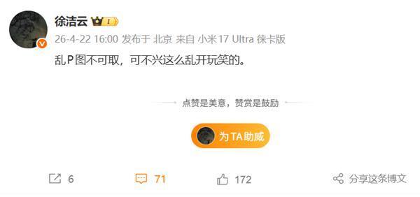 此次 P 图引发的闹剧,有网友表示:现在这些人 P 图真是以假乱真,真是服了,啥都敢整胆子真大。还有网友指出,现在 AI 做的图是越来越真了,一定要加以管制。
